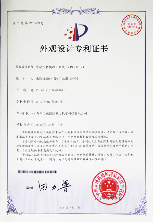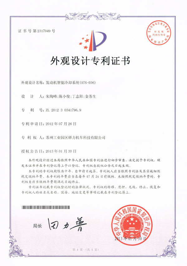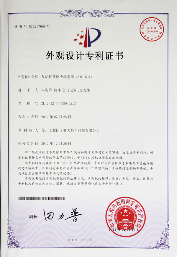 发动机智能冷却系统ATS-E06专利