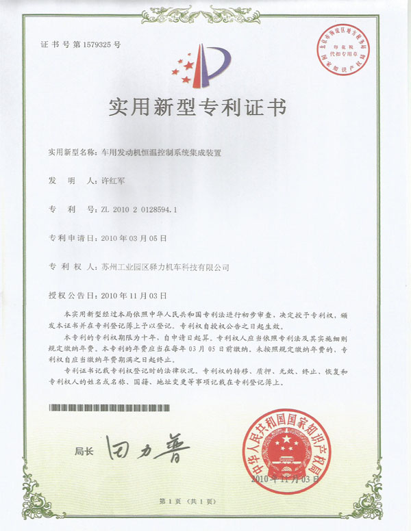 驿力科技可自检式车用发动机恒温控制装置专利